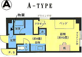 | 賃貸女子学生マンション「ユートピア清田32」(1K。utopiakiyota32.jp/)の「設備、備品」の室内配置図 |
